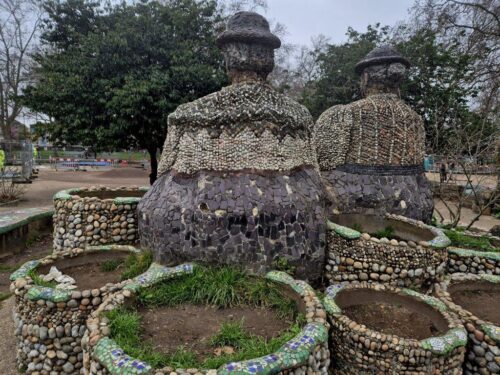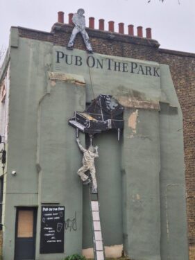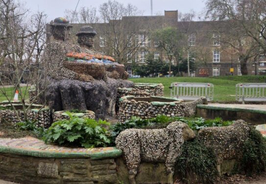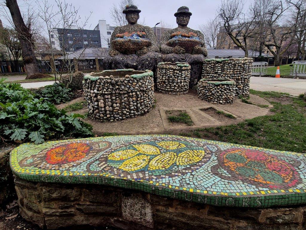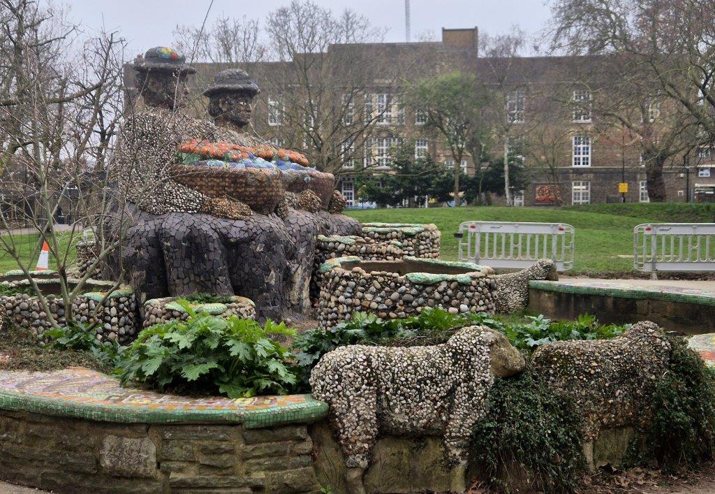 The day (indeed the whole of our trip) was unremittingly dull, but the Flower Sellers sculpture/installation in London Fields certainly cheered things up. Joyful, with allusions to the former use of the area as a ‘staging post’ for livestock heading for their final destination of Smithfield Market, the dates back only to the 1980s, but now feels as timeless as the large Plane trees in the Fields themselves.