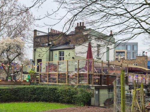 The walk from the bus stop took us past some impressive buildings, including 5 King Edward’s Road, a 1920s clothing factory now converted to residential in a very pleasing style. And just across the road, the first of many welcome places of refreshment, this a coffee stop in the Mare Street Market.