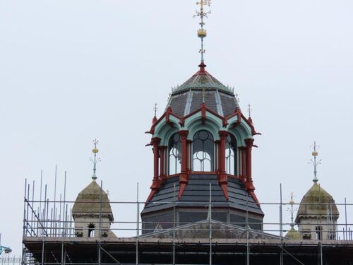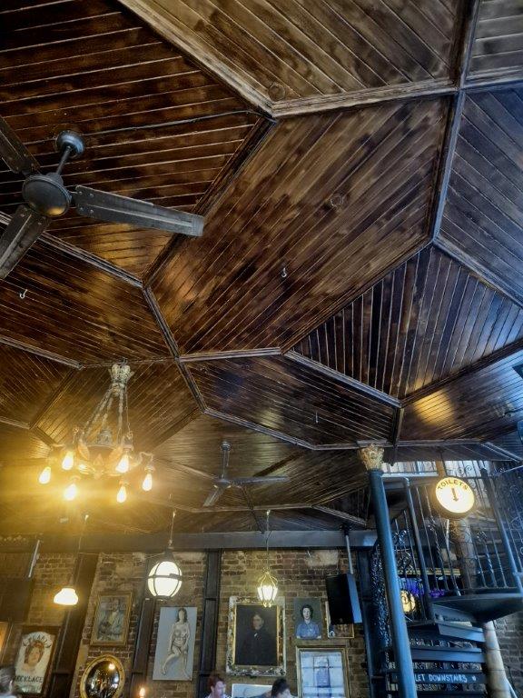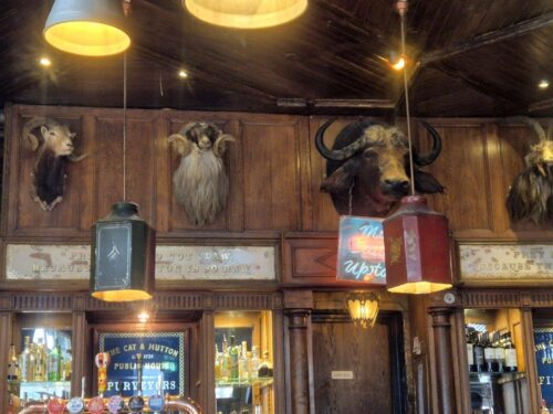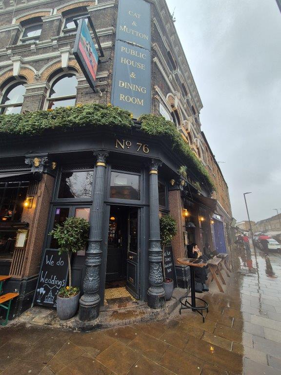 Approaching lunchtime with darkening skies, a pub was in order. The Pub on the Park was functional, albeit rather soulless while delivering the necessary refreshment. But close by, the Cat & Mutton was altogether more welcoming, a genuinely historic hostelry (established 1729) which made us want to linger, especially as the skies had by now opened! Good surroundings, good beer, and very good food. We even discovered the reason for its apparently odd name: originally the ‘Cattle and Shoulder of Mutton’ it clearly had a function serving the meat market traders.