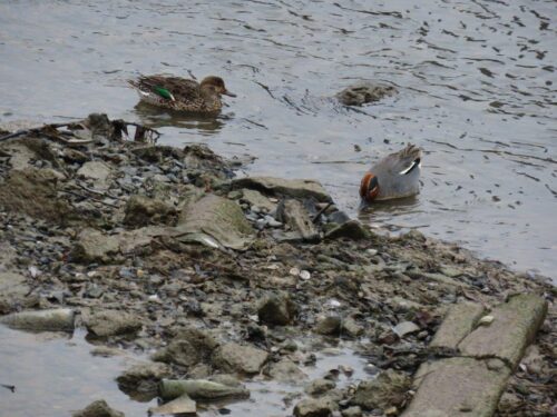 Being low tide, muddy margins were exposed and were frequented by Oystercatchers, while Teals dabbled in the shallows.