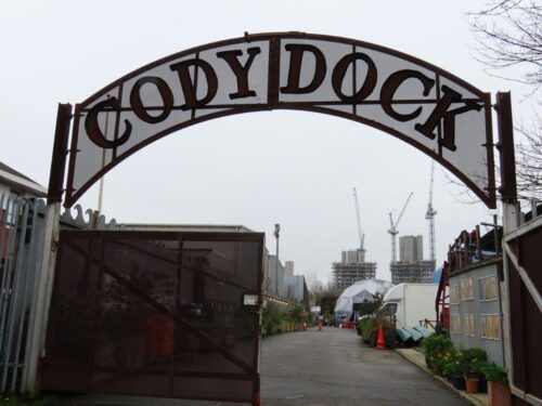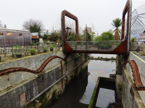 Heading up the tidal River Lee/Lea, our first destination was Cody Dock, a redevelopment of a disused dock space, with sustainability at its heart. We felt very much at home, especially with the very fine coffee and breakfast inside us, in one of the vital edgelands of the river.