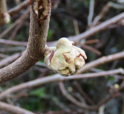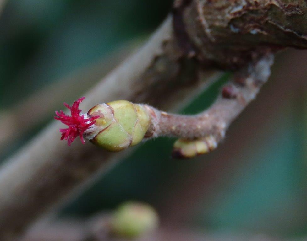 Planted Hazel bushes alongside the path were in flower, but noticeable mainly by the abundance of Big Bud galls, caused by a microscopic mite.