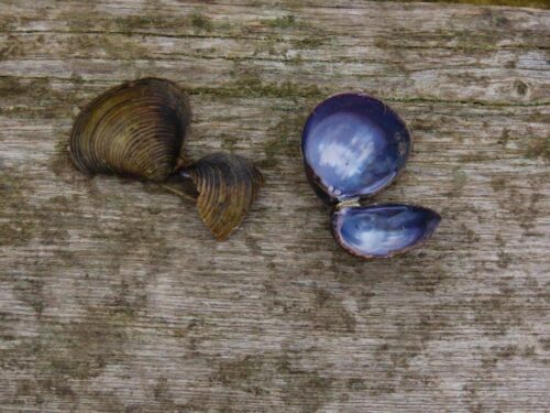 As we continued upriver, we saw or heard a couple of fly-by Kingfishers, together with more non-native, spreading molluscs: the terrestrial Wrinkled Snail and huge numbers of Asiatic Clams deposited on the path presumably by gulls trying the break open the shells. This species arrived as recently as 1997; it is now well-established in the Thames, the Norfolk Broads and the Great Ouse system, and still spreading.