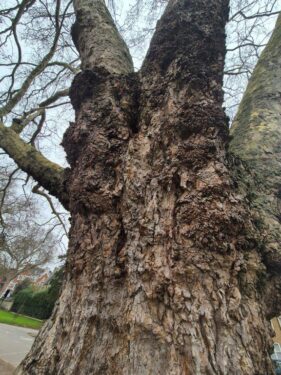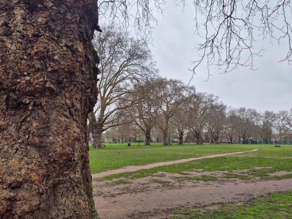 The London Planes harboured numerous Rose-ringed Parakeets (of course!), some trunks surrounded by a halo of flowering Sweet Violets, and throngs of happy people revelling in the Spring, even in the grey gloom of the day.