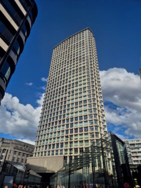 The Elephant & Castle was a great place to spend a sunny Sunday, everywhere the Strata building looking down on us like a benevolent old owl….