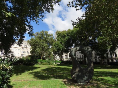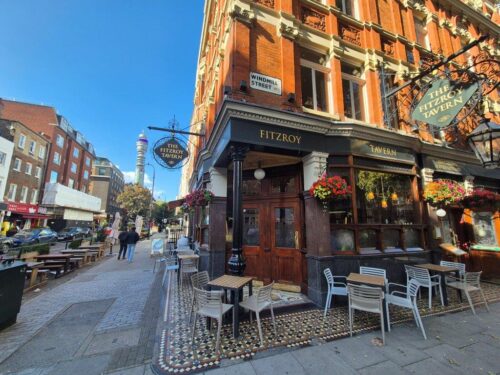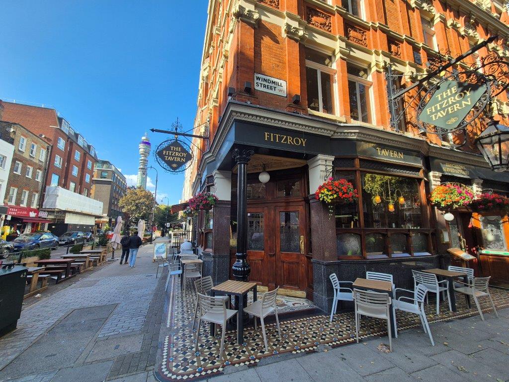 Another blue-sky dawn (unexpectedly so) for our second day, although the breeze delivered an equinoctial chill as we headed out by bus to Oxford Circus to walk the area of Fitzrovia.