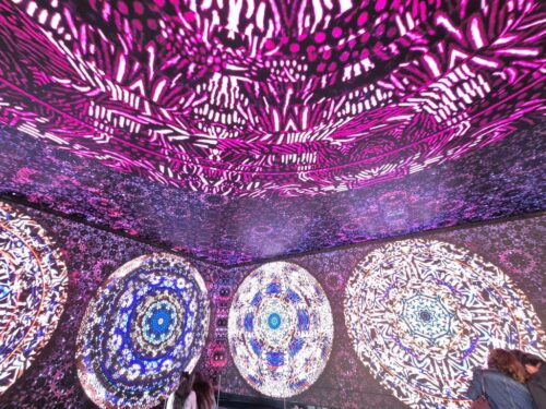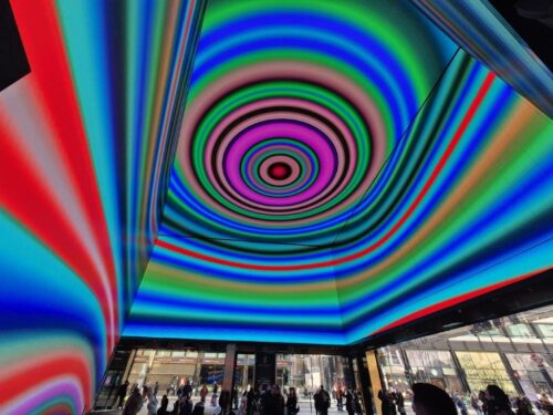 A remarkable building and well worth our visit by itself. But surprisingly there was a last delight to come, much more recent in origin. Just outside Tottenham Court Road station we chanced upon the Outernet London experience, immersive spaces of colour and imagery, just as at the Chapel but with added movement and sound. Awe-inspiring in its own digital way, we hadn’t heard of it before, but since it opened in 2022 it claims (on its own website) to be ‘the most visited cultural attraction in the UK’…