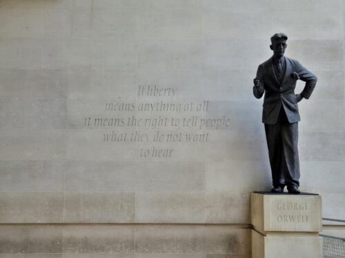 Wise words: George Orwell’s should be etched on our hearts as well as the stone. Sadly they are as, if not more, relevant today as when written, but even chalked aphorisms have resonance…