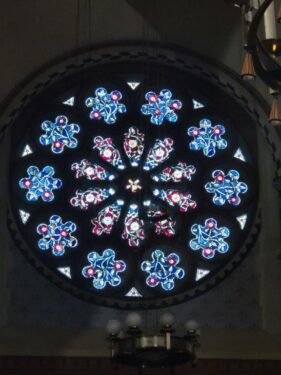While not having the same aura as the morning’s church, the Priory did feature historic artefacts, some fine modern stained glass (with yet more birds) and a warm welcome from the vicar without any expectation of religious observance.