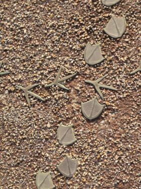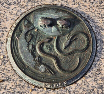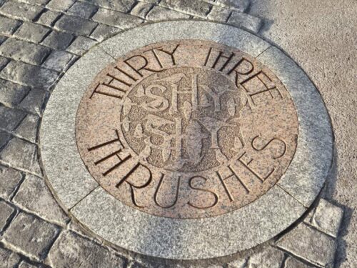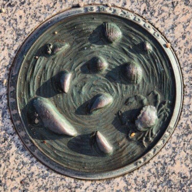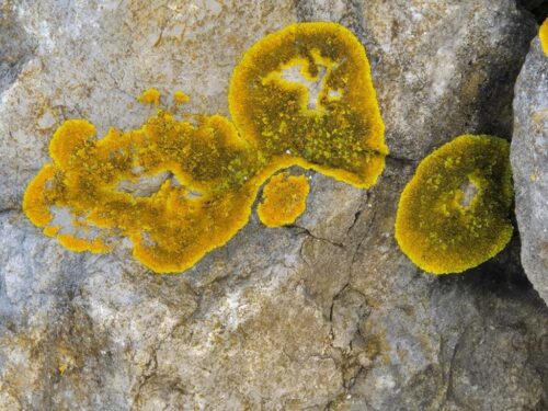 … to plaques in the pavements, along with natural adornments like Sunburst Lichens: