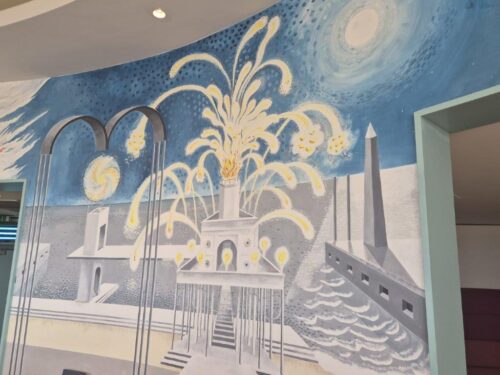 Art included a frieze by Eric Gill and THAT reimagined mural: