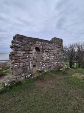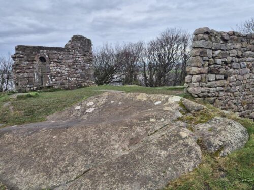 Then perched on the rocky knoll above the church was St Patrick’s Chapel, now ruined. From the 8th century, it postdates the founding of the church but predates the bulk of the present church building. Despite their exposed location, battered by wind, water and salt, the rocks and walls are still encrusted with lichens and wreathed in ferns.