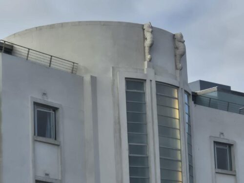 Along the prom again, there were yet more bird artefacts, together with once-impressive but fading seaside buildings: