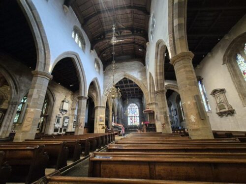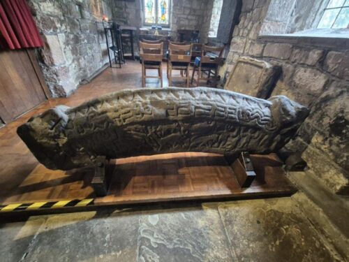 Inside, it felt very serene, and laced with intriguing history, including a Viking hog’s-back and a stone cross from a century earlier, both intricately carved. It really felt like it justified its Grade 1 listing, but given it is believed to be one of the earliest sites of Christian worship in Western Europe, with parts dating back possibly to the 6th century, the fact we were there alone was remarkable. And delightful! There is something so magnetic about carved rock, and we were happily transported back to two previous places of wonderful carvings, the Govan Stones near Glasgow and the church at Llantwit Major.