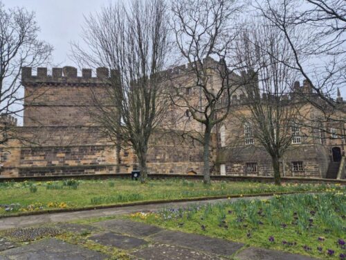 Down the hill, past the Castle and more banks of flowering bulbs, we headed into town, dodging the worst of the rain in a café and charity shops.