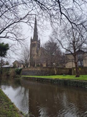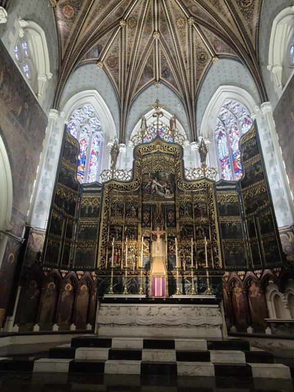 A super start to the day, giving us strength to face the rain and the frankly appalling busy roads just outside with no provision for pedestrian crossing. But safely back to the canal, we headed towards the Cathedral, welcome shelter among neo-gothic opulence.