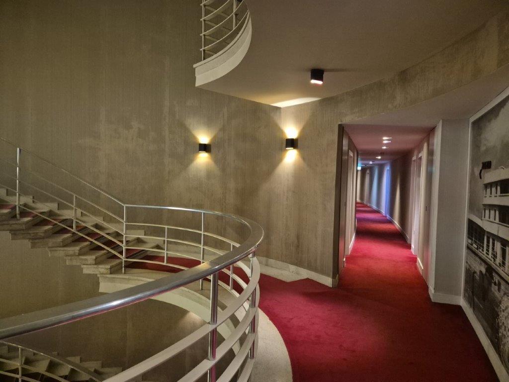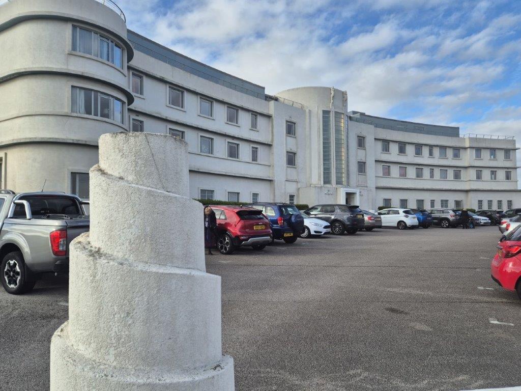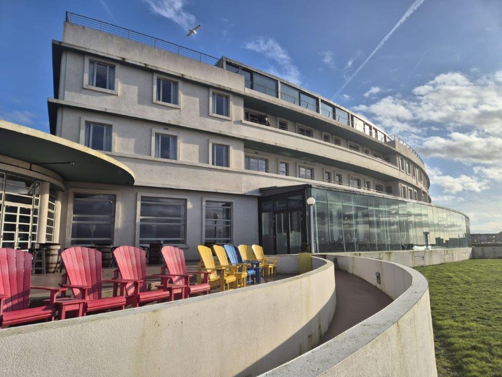 … as we walked the short distance to our hotel, the Midland, the whole reason we planned this short break. It all goes back to our visit to Dulwich Picture Gallery last May to see the Tirzah Garwood exhibition. A few days later Jude was reading a book on Seaside Architecture, where she came across this hotel and the fact that shortly after it was built in the 1930s, Tirzah and her husband Eric Ravilious had painted a mural therein. Unfortunately, the mural soon fell off the wall, and indeed the hotel fell into disrepair in the post-war period. Fortunately the building was rescued, revived and reopened in 2008, and a mural inspired by the original recreated for the filming of an episode of Agatha Christie’s Poirot: we just knew we had to visit, and we were not disappointed!