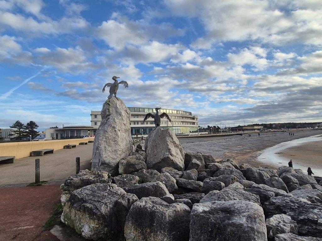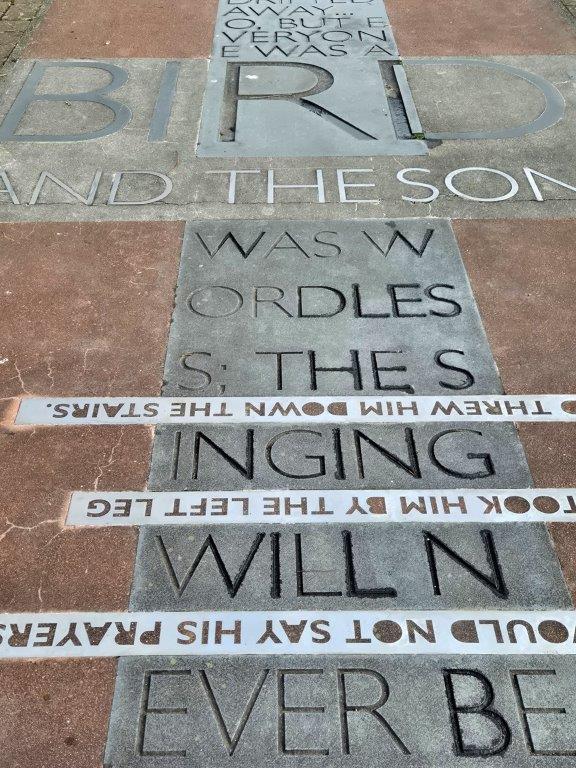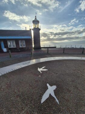 And so with a change at Lancaster we rolled into Morecambe just after lunchtime. And straight off the train we found ourselves immersed in birdiness, from sculptures to pavement poetry …