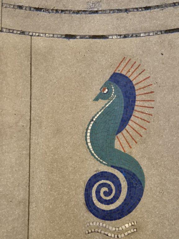 From the outside it is a classic Art Deco building, designed by Oliver Hill, whose work we are familiar with from the seafront at Frinton. And from the outset the artistic touches are apparent, including two seahorse sculptures over the entrance by Eric Gill.