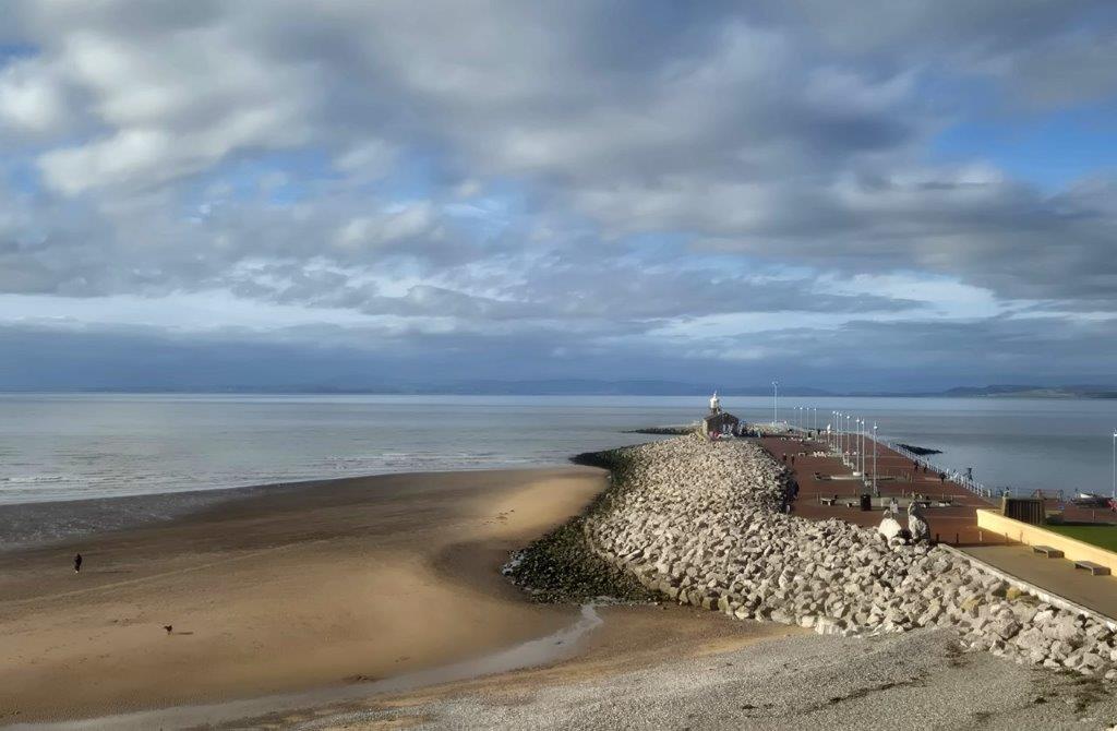 Some welcome blue sky and sunshine peeping through broken cloud illuminated our two-and-a-half-hour rail trip from Euston to Morecambe, as we sped past numerous familiar sights from Camden Roundhouse and Wembley Stadium, to the Chilterns and Red Kites, canals and flooding, the Peak District and Forest of Bowland.