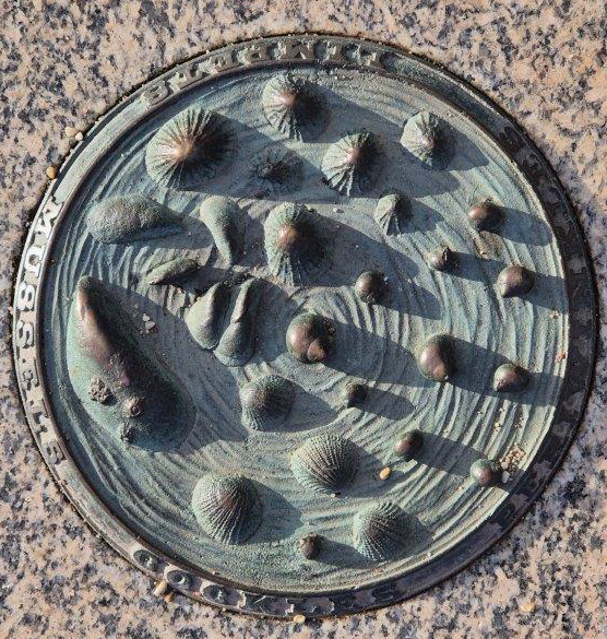 … to plaques in the pavements, along with natural adornments like Sunburst Lichens:
