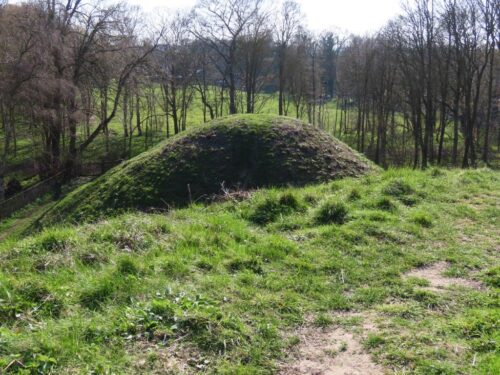 For a long time erroneously associated with King Cnut and the dead from the Battle of Assandun in 1016, subsequent excavation has demonstrated them to be the grave-mounds from a wealthy family of the 1st or 2nd century AD. Apparently all manner of artefacts were recovered, including large wooden chests, decorated vessels in bronze, glass and pottery and an iron folding chair, most of which were lost in a fire at Bartlow Hall.