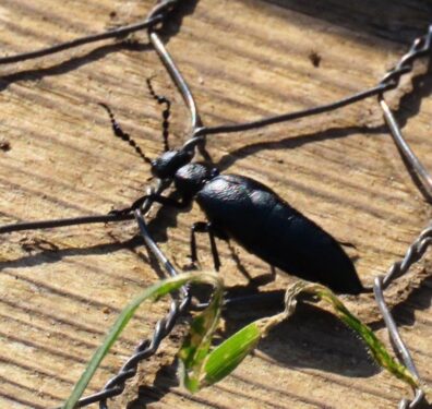 The tallest mound, at 15 metres in height, is claimed as the largest Roman barrow north of the Alps, and well worth the slog up the steps. And following me up was a very special insect, a male Black Oil-beetle Meloe proscarabaeus. In Essex we know this only from a few sea walls and sand dunes, and on the NBN map it appears this is its only Cambridgeshire site, apart from a couple of spots on the edge of the Fens.