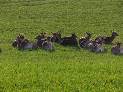 On the windswept peak (at just over 100 metres altitude) is obviously a good place for a windmill, and also to get a feel for the well-wooded, farmed landscape, the fields often featuring Fallow Deer.