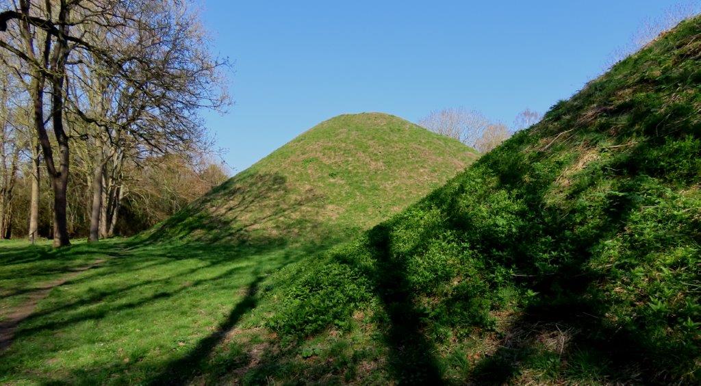 Then it was south across the Granta into ‘old Essex’, over the old railway line (sadly closed as recently as 1967) until the distinctive looming shapes of the Bartlow Hills hove into view. A series of three large Roman tumuli, these are the visitable part of a group of seven earthworks, of which the remainder have been much reduced in height.