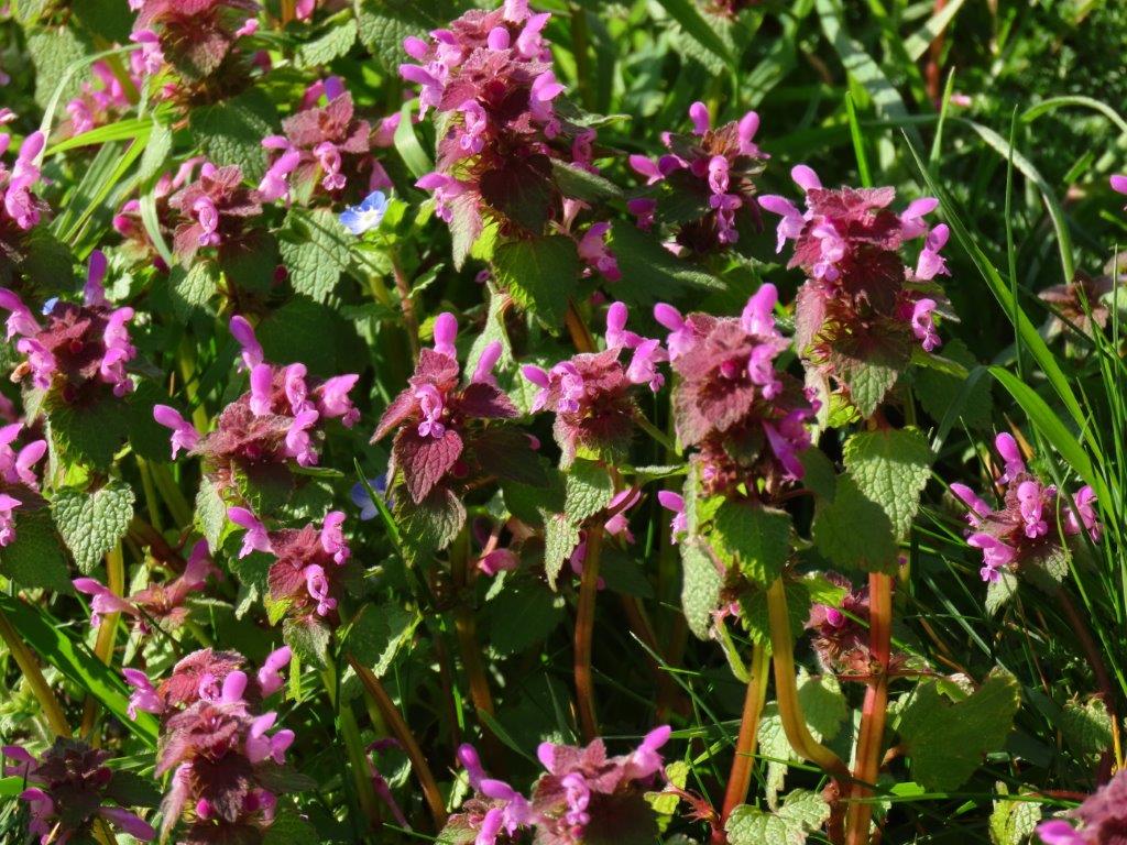 In the afternoon heat, the churchyard was buzzing with life. Patches of Red Dead-nettles, Primroses and Sweet Violets were in full bloom, attracting Peacock butterflies, while Brimstones and Dark-edged Beeflies were everywhere, and Nursery-web Spiders were out basking on many a leaf.