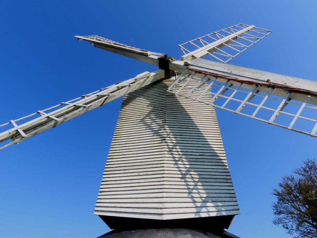 On the hill high above the town is a fine windmill, reached after a bit of a nervous drive a few hundred metres up a single track road with bends and high hedges. But least there is a carpark at the top!