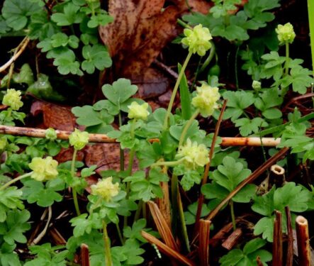 Two plants for me were particularly noteworthy. The dramatic parasitic Purple Toothwort had erupted next to the Willow Room, and several of the damper borders were laced with a lime filigree of Town-hall-clock. One of my favourite unassuming native woodland plants, where else can it be seen bringing the sense of wildwood into our daily lives?
