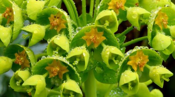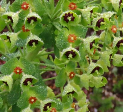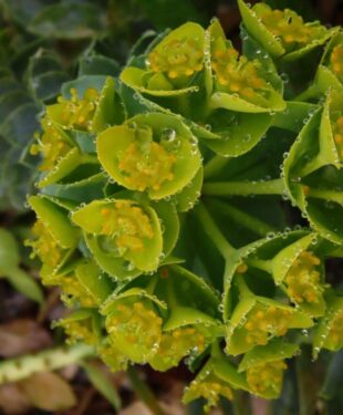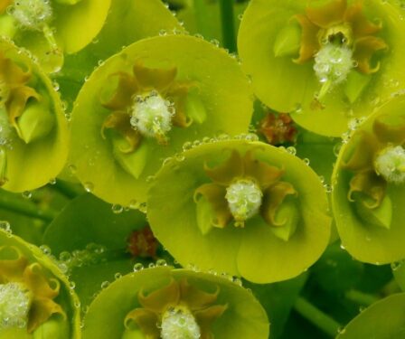 And then Euphorbia! So many different species and cultivars now in flower. All recognisably spurges, with their unique inflorescence structure known as a cyathium…