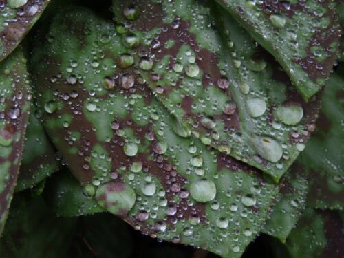 It was the last day of the month, and the day dawned mizzly. When I arrived in the Gardens, it had stopped drifting down from the cloud, but moisture had congealed on every surface, mercurial drops turning every leaf into a work of art.