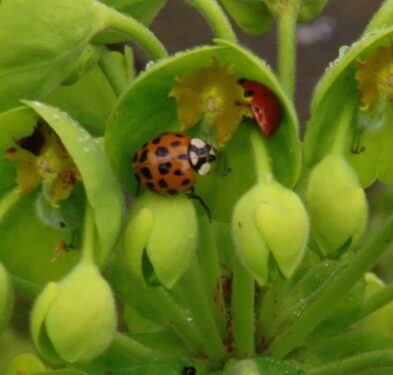 And they really pull in the insects of all sorts, open inflorescences with lots of pollen and masses of nectar that are now doing the heavy lifting of feeding our insects. There were ladybirds everywhere…