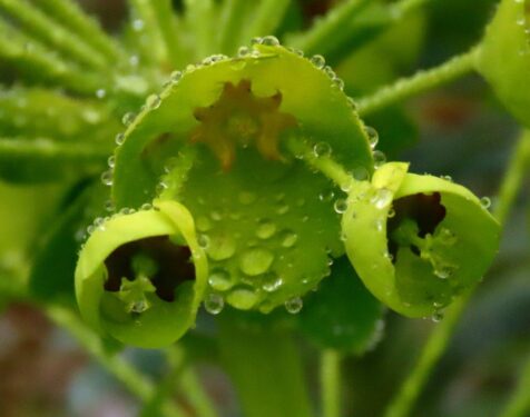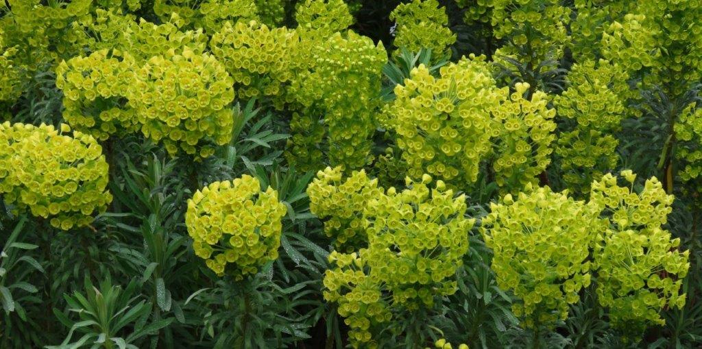 And then Euphorbia! So many different species and cultivars now in flower. All recognisably spurges, with their unique inflorescence structure known as a cyathium…