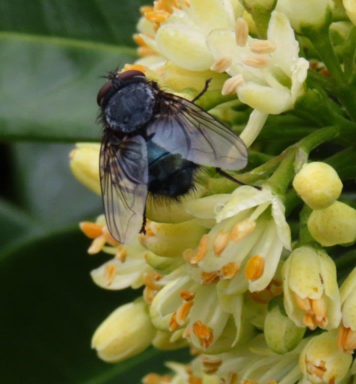 After the dampening, it took the insects a while to become active, but the still warmth coaxed a few out. Two plants are the superstar attractors at this moment. Firstly, there is Skimmia, each plant producing a pool of sublime scent in the still, moist air, attractive to us, but also crucially also to pollinators, especially bumblebees and blowflies.