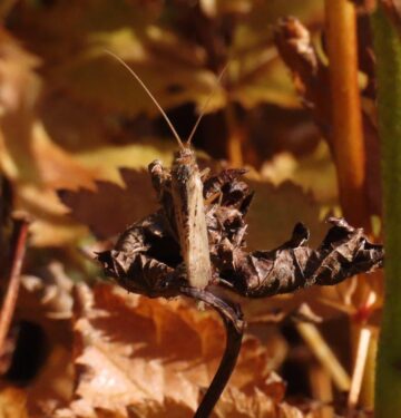 And sharing the aquatic immature stage of dragons and damsels, although as larvae instead of nymphs, a caddis-fly found camouflage among the browning poolside vegetation. These are tricky to identify, but this is one of the many, quite similar, Limnephilus species.
