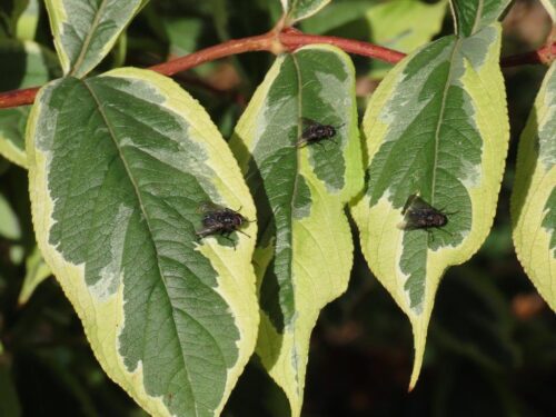 The most numerous insect group around the garden was the flies, whether groups of midgey minutiae dancing in the fading sunlight, or larger ones basking on sunlit leaves and wooden benches, or feeding at the fading flowers.