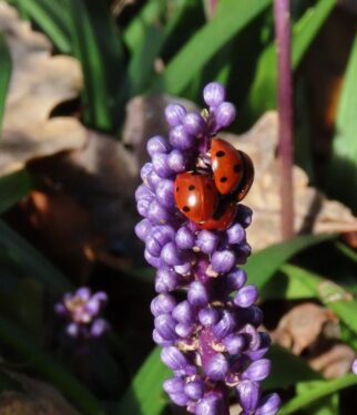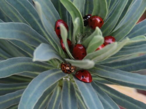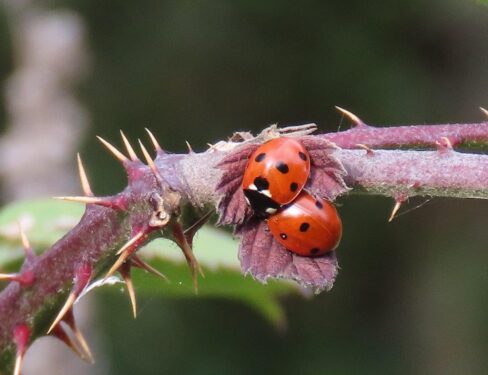 Ladybirds, the kids’ favourites were to be found everywhere, mostly Seven-spots with a few Harlequins, but they are now starting to congeal into what will become their overwintering aggregations: