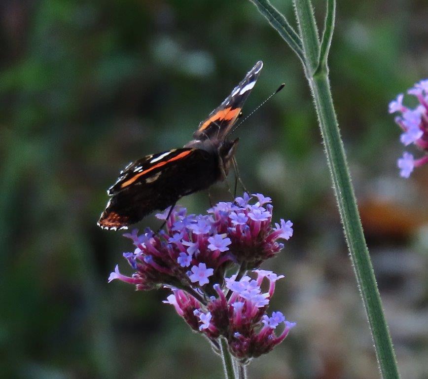 Late season butterflies, especially Red Admirals and Commas feeding up before hibernation, were still on the wing with a surprisingly late, newly emerged Small Copper, nectaring especially on Verbena bonariensis.