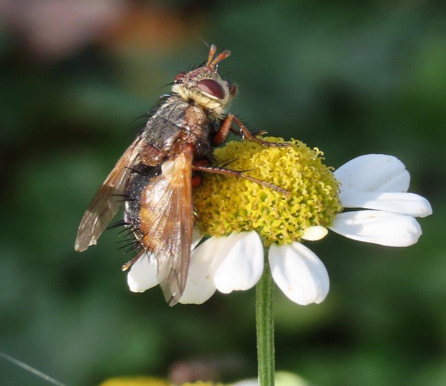 … but the specific identity of tachinid parasite-flies is more difficult to be sure of. The large ones with orange sides ‘used to be’ Tachina fera, but another pretty much identical species T. magnicornis has arrived recently in the UK, so we cannot now be so certain.