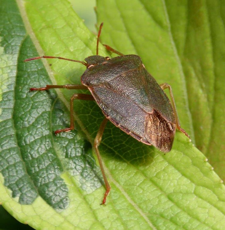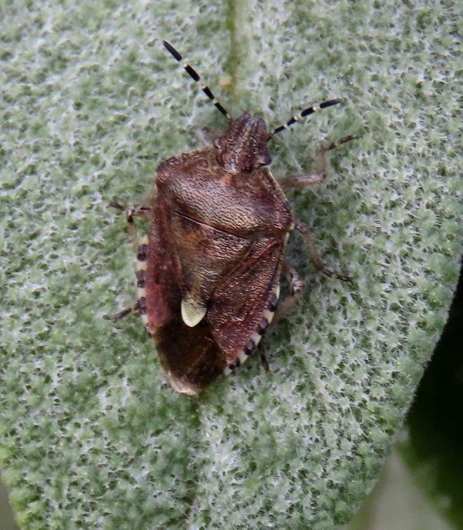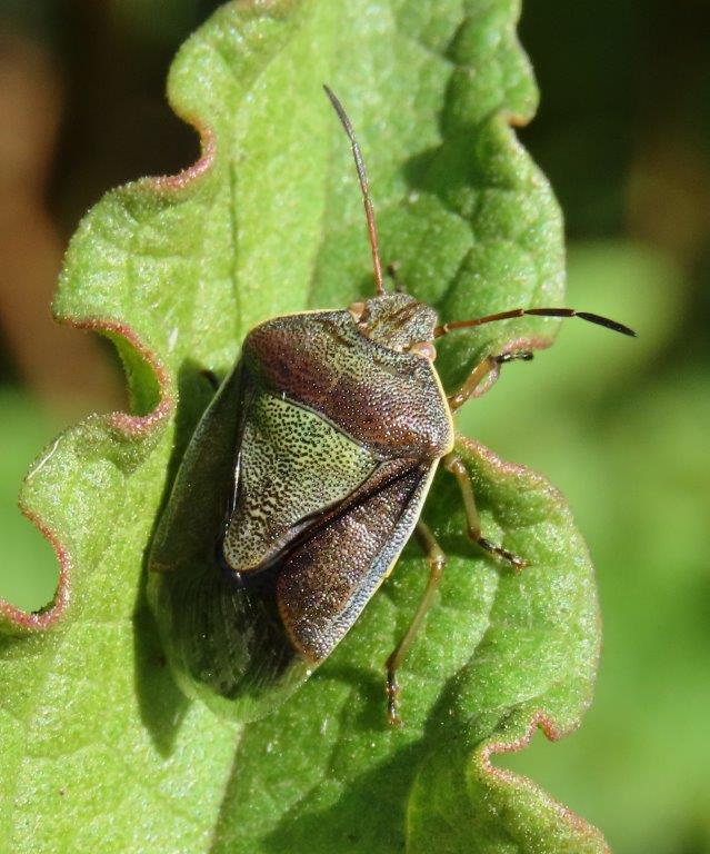 But perhaps the most remarkable insect feature of these walks were the true bugs, more than I have seen all summer. Most numerous were Hairy Shieldbugs along with Green Shieldbugs, some still sporting summer green but others browning into winter camouflage: