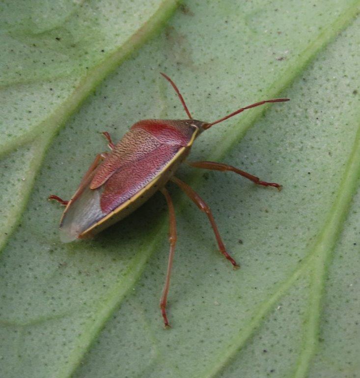 Gorse Shieldbugs too, also changing colour but always with the distinctive pale rim: remarkably, these are only the second and third garden records, and neither was on their traditional foodplant of Gorse…