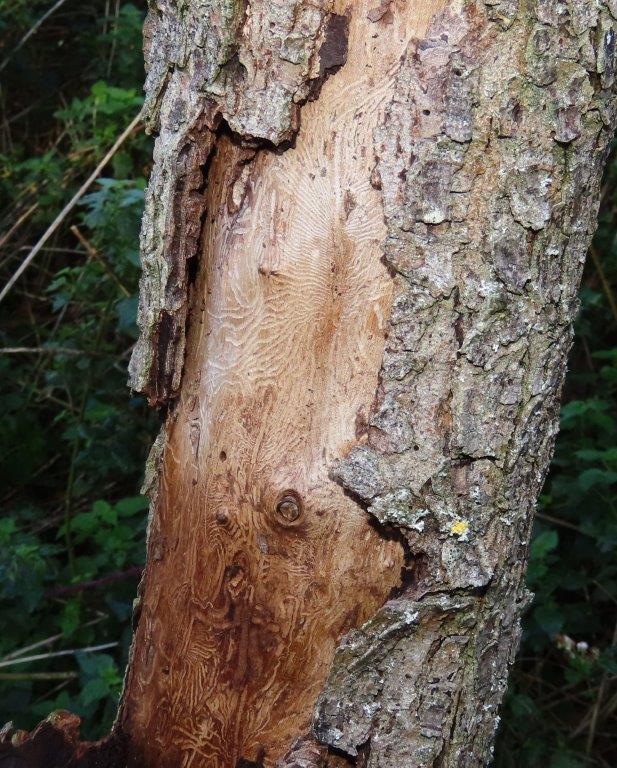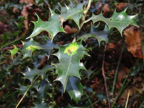 Robins were singing wistfully, although other woodland birds remained quiet, giving us chance to explore the wonderful world of leaf-mines, with Holly Leafy-miner fly blotches on many a leaf.