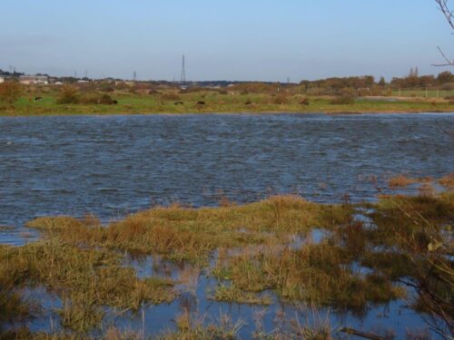 The barrier was still closed as we reached it, making me think it must be closed for maintenance. But no, once downstream it was clear that the tide was still fully in. Clearly the weather conditions had produced a tidal surge that had delayed the tidal peak by a couple of hours, and produced a peak much higher than the astronomical prediction. Always a good opportunity to talk about the vulnerability of those living on the edge of the tide, and the arrogance of those who think we can win the fight against Nature.