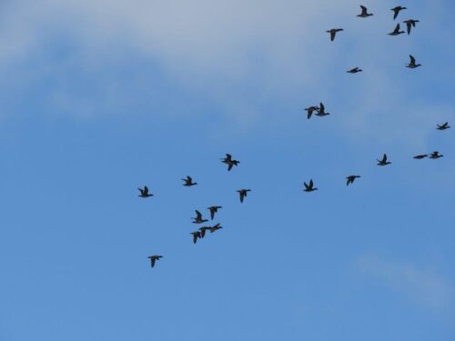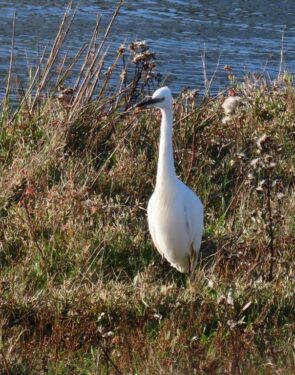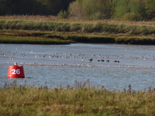 But it was clear something was amiss with the tide. There was a lot of water, and it was not moving: it seemed the Wivenhoe Tidal Barrier must have been closed, very surprising given that the predicted high tide has passed, and we were still about five days away from the next round of spring tides… So while the Dabchicks were happy, most of the waders had to hunker down in their saltmarsh roosts, apart from the longer-legged Curlews and Little Egrets.