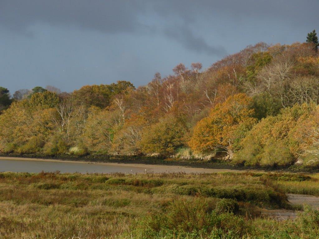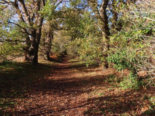 … and along Cutthroat Lane, the cold wind having abated with the passage of the rain, and the sparkling sunlight bringing welcome warmth and life to the autumn colours. A very appropriate place to hear the ‘happy peals’ of the Wivenhoe Church bells drifting up from the lowlands maybe 3km away which marked the funeral of our friend Graham….