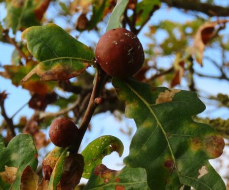 Into Grange Wood where ancient woodland tumbles down to the tide in a most un-Essex-like manner, and an introduction to the fascinating world of galls, exemplified by both marble- and spangle-galls…