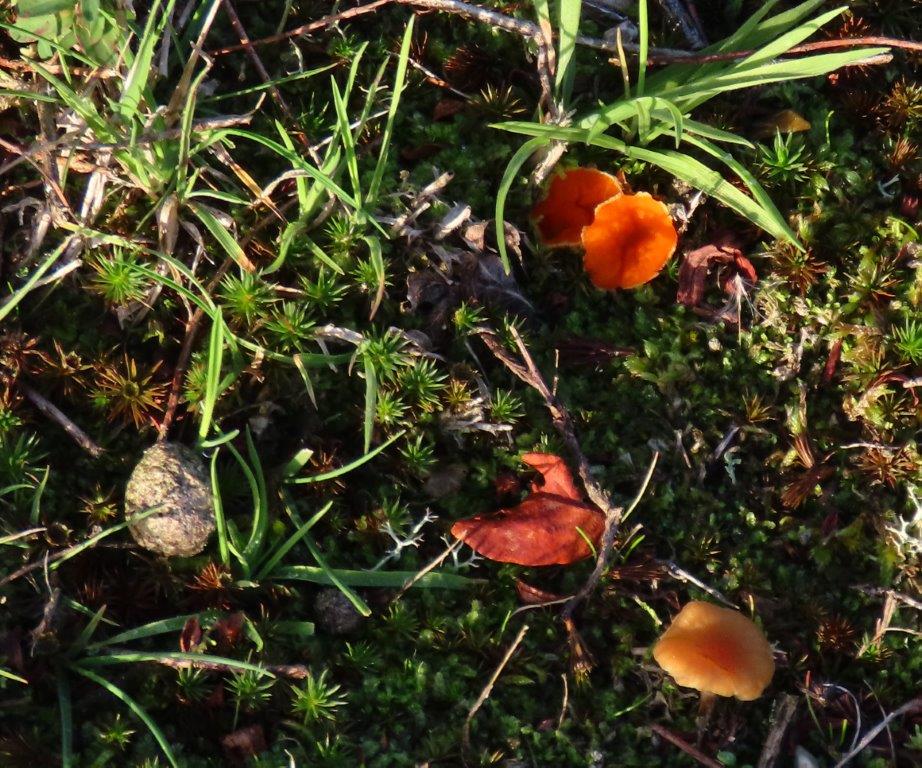 And it was then into Cockaynes Reserve for more autumnal fare, including Redpolls and Siskins heading to the Alders, and fungi sprouting from the heathland, life after gravel extraction: the orange discs of a Neottiella species among the Reindeer Lichen and a couple of fruit-bodies of the cheesecap Russula nitida, a mycorrhizal species associated with the roots of Silver Birch.